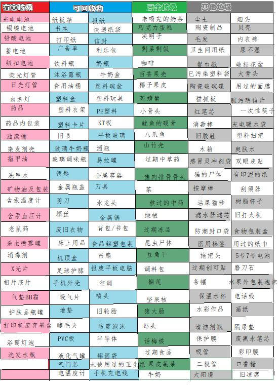 《條例》第三條規(guī)定,成都生活垃圾以“可回收物、有害垃圾、廚余垃圾和其他垃圾”為基本類別,實(shí)行分類投放,并明確了四類垃圾的定義,列舉了常見品類,便于市民群眾對照分類。具體分別為: