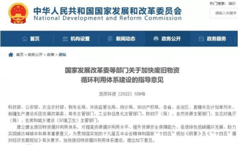 1月21日,國家發(fā)改委等部門發(fā)布了《關于加快廢舊物資源循環(huán)利用體系建設的指導意見》